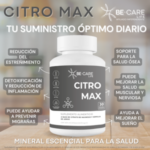 Experimenta los beneficios del Citrato de Magnesio. El magnesio es un mineral esencial que desempeña un papel crucial en numerosas funciones. Beneficios clave: • Regula el tránsito intestinal y evita el estreñimiento • Favorece la digestión y absorción de nutrientes • Relaja los músculos y reduce el estrés • Mantiene hidratado tu cuerpo Con Citro Max, podrás disfrutar de una salud intestinal óptima y mejorar tu bienestar general. ¡Descubre los beneficios de una digestión saludable!"